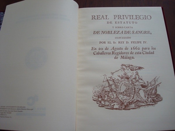 Privilegio de Estatuto de Nobleza de Sangre de la Ciudad de Málaga, s. XVII 9788489883475