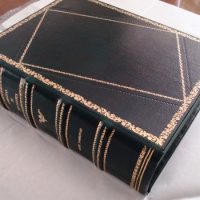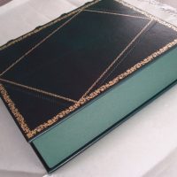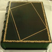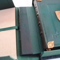 The publisher gave this extraordinary work in a wooden case lined box in fine red cloth, of very poor quality and suitable for delivery and little else. That box will not be delivered with this unique issue number 1. We have performed a spectacular case box format book, and exclusively for this special issue, made entirely by hand in green leather to match that of the codex, with gold gilt law rib and loin. Inside they are both facsimile of the codex and the book study. Both will be fully protected forever in your library. Photo regret that we did not enhance the actual color of the skin of the box but we guarantee the above.