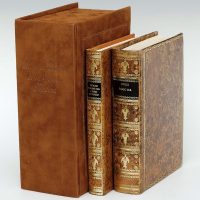 Leather-bound facsimile format 15.5 x 20.5 cm, 300 pages. special role in treated and aged, old-fashioned sheets and parchment sewn with vegetable thread. Accompanied by the corresponding book study (same format, 150 pages) and both presented in an elegant case closed.