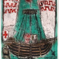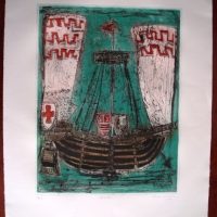 Color etching, aquatint, signed and numbered in pencil by the author. Number 15 recorded a limited series of 30 copies. Title “The Galleon” 1997. Malaga Stage. Original work.