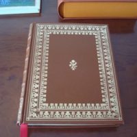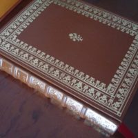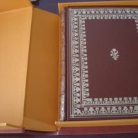 Presented in a book case, in leather with gold, rounded spine and fabric interior. Format 29 x 35 x 7.5 cm.