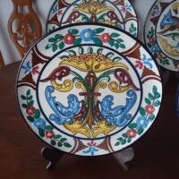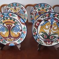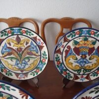 Beautiful lot of 6 large ceramic plates from Granada, 5 different drawings, with fantasy motifs, flowers and fruits.
