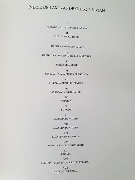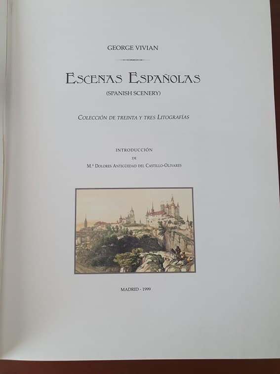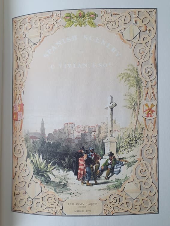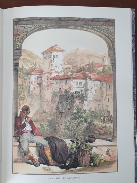 Travels through Spain. 19th Century. A selection of 33 full-color lithographs by Londoner George Vivian (1798-1873) entitled “Spanish Scenes,” and 24 full-color lithographs by Frenchman Nicolas Chapuy (Nicolas Marie Joseph Chapuy, 1790-1858) entitled “Views of Spain.” Special limited edition of 1999 by Guillermo Blázquez, Madrid, of only 100 copies.