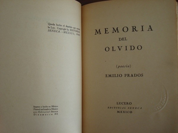 1940 Emilio Prados, Memoria del olvido, poesía 1 × 250,00€