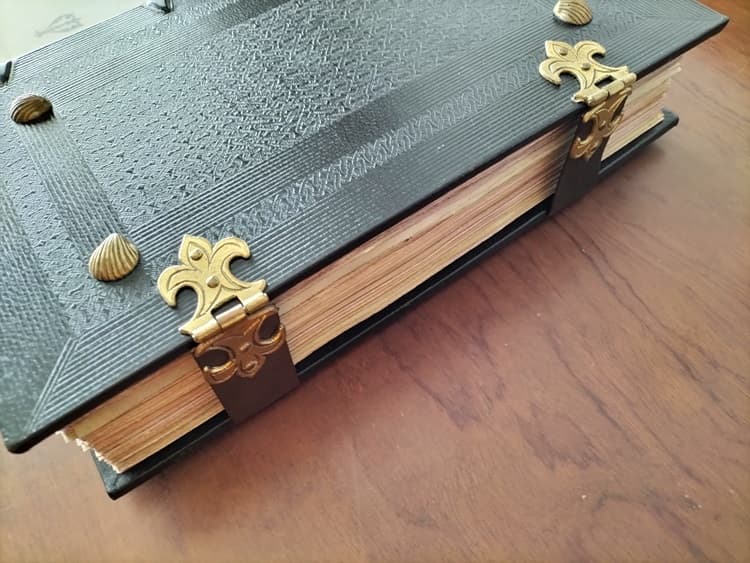 Facsímil encuadernado en piel con herrajes de conchas pelegrinas y 2 cierres de cuero y metal. Formato 21 x 32 cm. 456 páginas.